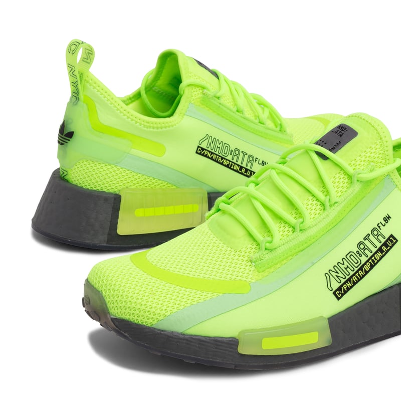 Inspired by our constantly connected world of streaming data, these adidas NMD_R1 Spectoo Shoes put a fresh spin on classic NMD style. The streamlined knit upper is marked with text graphics and a translucent side, a subtle nod to the transition from city explorer to digital traveler. Flexible and responsive, the adidas Boost midsole is unbelievably comfortable from the first step to the last.