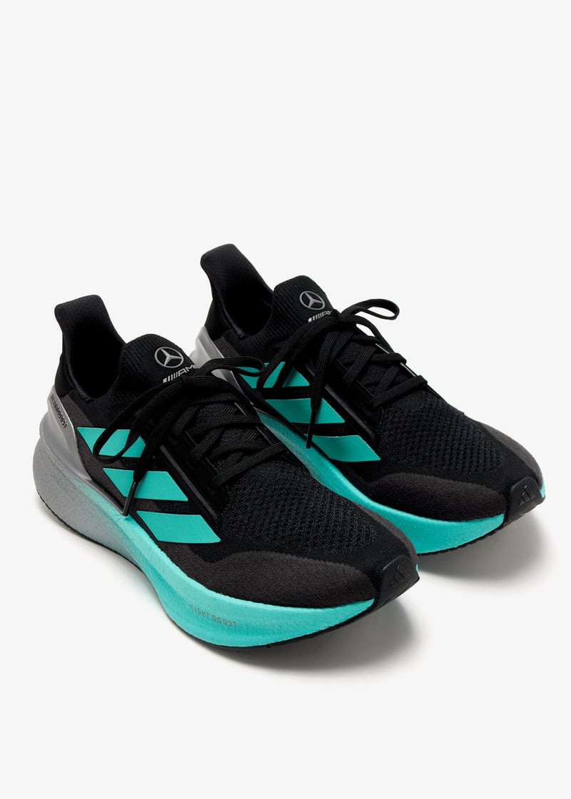 adidas has partnered with the Mercedes-AMG PETRONAS F1 Team to design a complete range of performance gear for the team and their fans. This collaboration blends adidas' 75 years of expertise with the cutting-edge demands of Formula 1, pushing the limits of innovation and style. Experience adidas's lightest BOOST with these UltraBOOST 5X sneakers from the collection that offer continuous energy return to keep you feeling fresh from start to finish. With the Torsion System providing stability between the heel and forefoot, you'll enjoy a smooth, steady stride, no matter the distance or pace. The Continental™ Rubber outsole ensures secure traction in both wet and dry conditions.