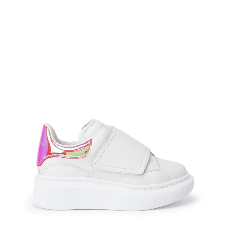 Alexander McQueen's signature oversized sneakers are downsized for your minis. This trending style is crafted with smooth leather and features a contrasting heel, a wide Velcro strap, and an elevated rubber sole. A comfortable and stylish pair for your little one.