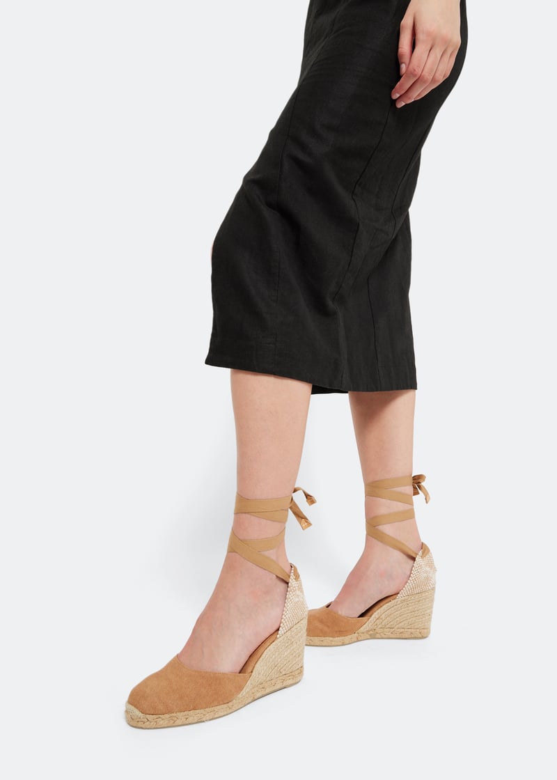 Castañer is known for bringing freshness to classic feminine styles and these Carina wedge espadrilles are a particularly chic example. The wrap-around ties, braided jute sole and streamlined silhouette lend the espadrille aesthetic an effortless elegance. Use them to give daytime dresses an extra lift.