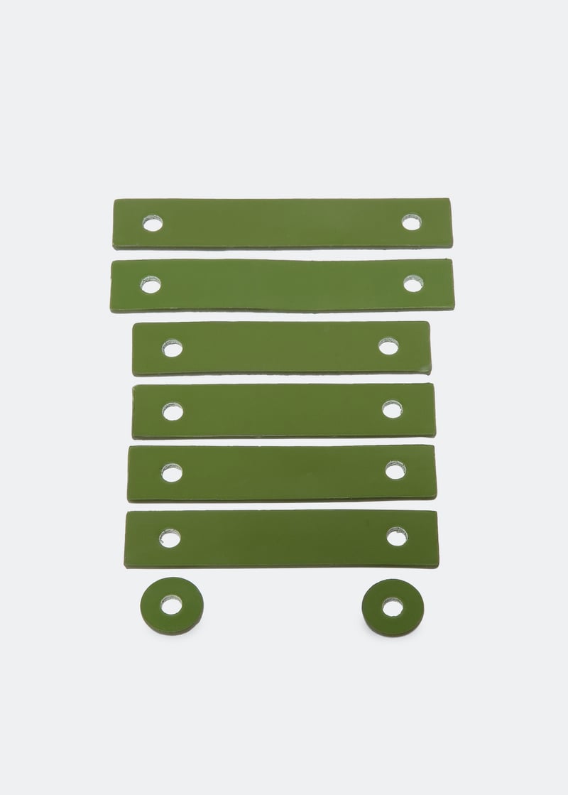 Take your sneaker game to the next level with these fun leather sneaker straps from Daniel Essa. Crafted from green leather, they come in different sizes and are interchangeable on the brand's sneakers.