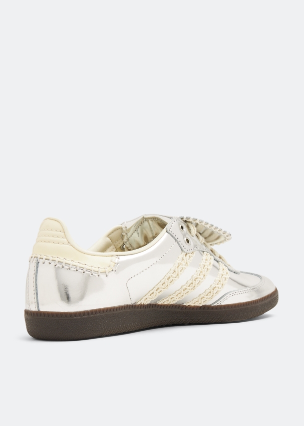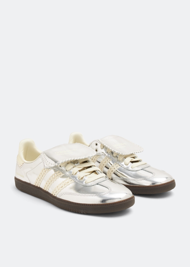 The shoe that's back on everyone's radar, adidas' iconic Sambas are given the Wales Bonner treatment once again. Defined by the oversized, foldover tongue referencing retro football styles, this metallic pair is crafted from silver leather with intricate stitching details covering the iconic 3-Stripes and heel counter. They're finished with a durable rubber sole, lace-up closure, and co-branding embellishments on the tongue and insole.