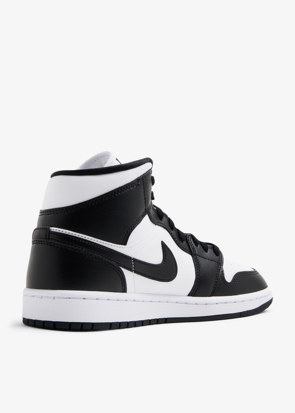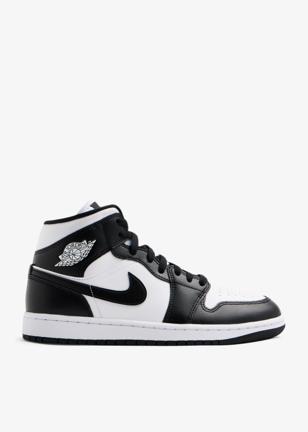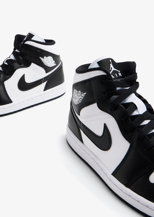 Presented in the 'Black/White' colourway these Nike Air Jordan 1 Mid sneakers boast their iconic full-court style and premium comfort. Crafted from leather, they're completed with the cushioned Air-Sole unit, padded collar for a supportive feel, rubber sole, and a perforated toe box.