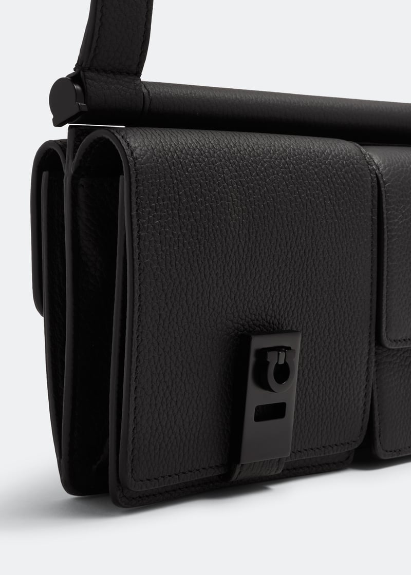 The Multi-pocket crossbody bag from Ferragamo features a sophisticated and functional design, styled with matte hammered calfskin and a tonal-painted Gancini buckle detail. It features an adjustable strap for shoulder and crossbody wear, along with two front compartments and one spacious back pocket, so you can wear it on either side for ease.