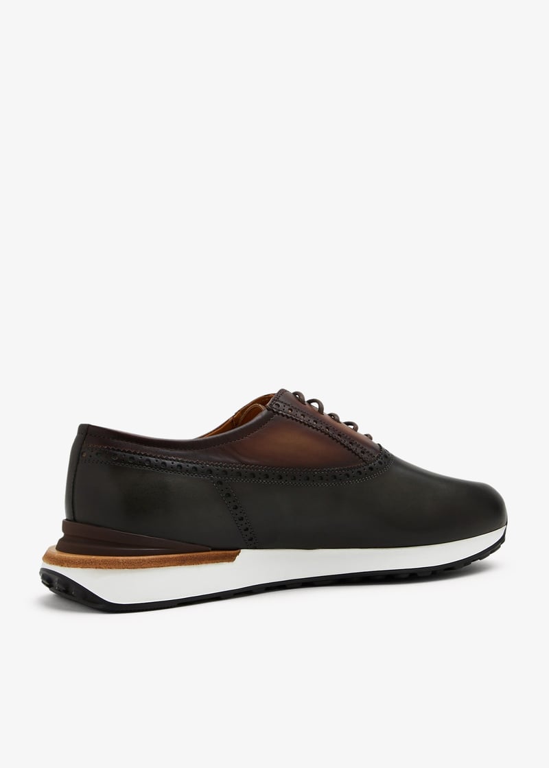 Set on a chunky sole, these leather sneakers by Magnanni are the perfect pair for your off-duty adventures. They're completed with a hand-dyed green and brown hue, perforations and a lace-up closure.