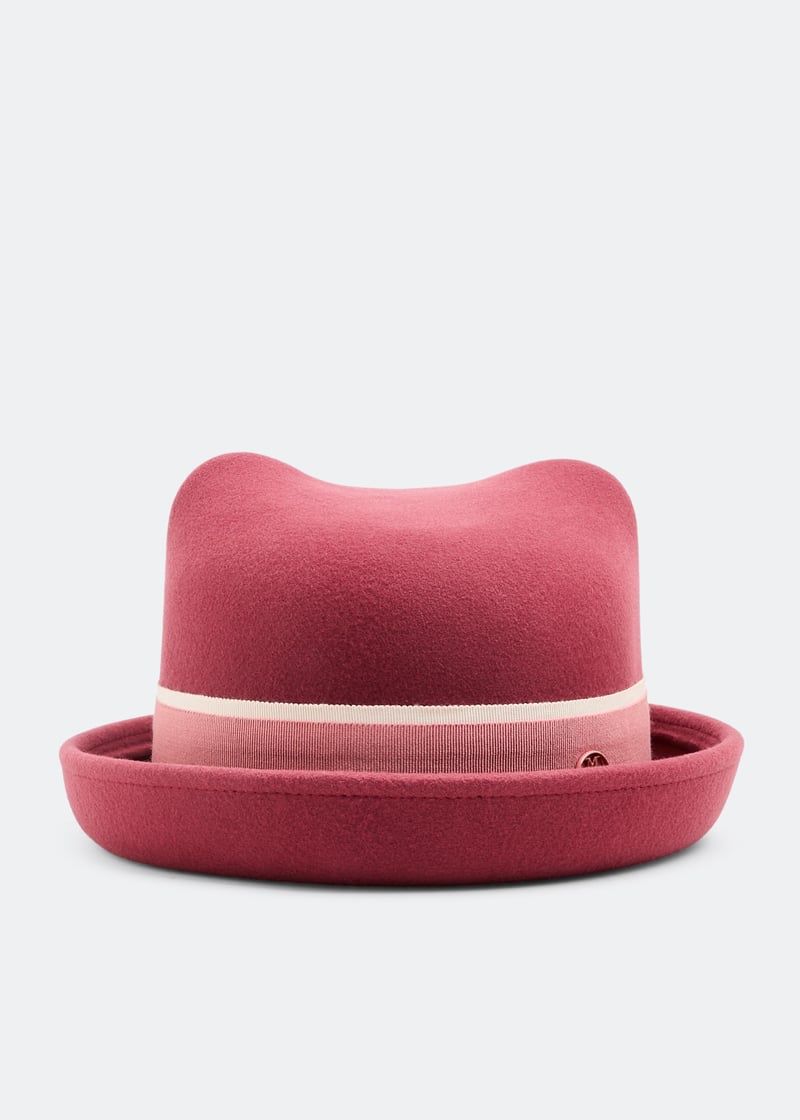 As part of the adorable Maison Michel Kids collection, the Winnie hat is crafted from soft pink felt with two ears, a grosgrain ribbon and metal logo embellishment.