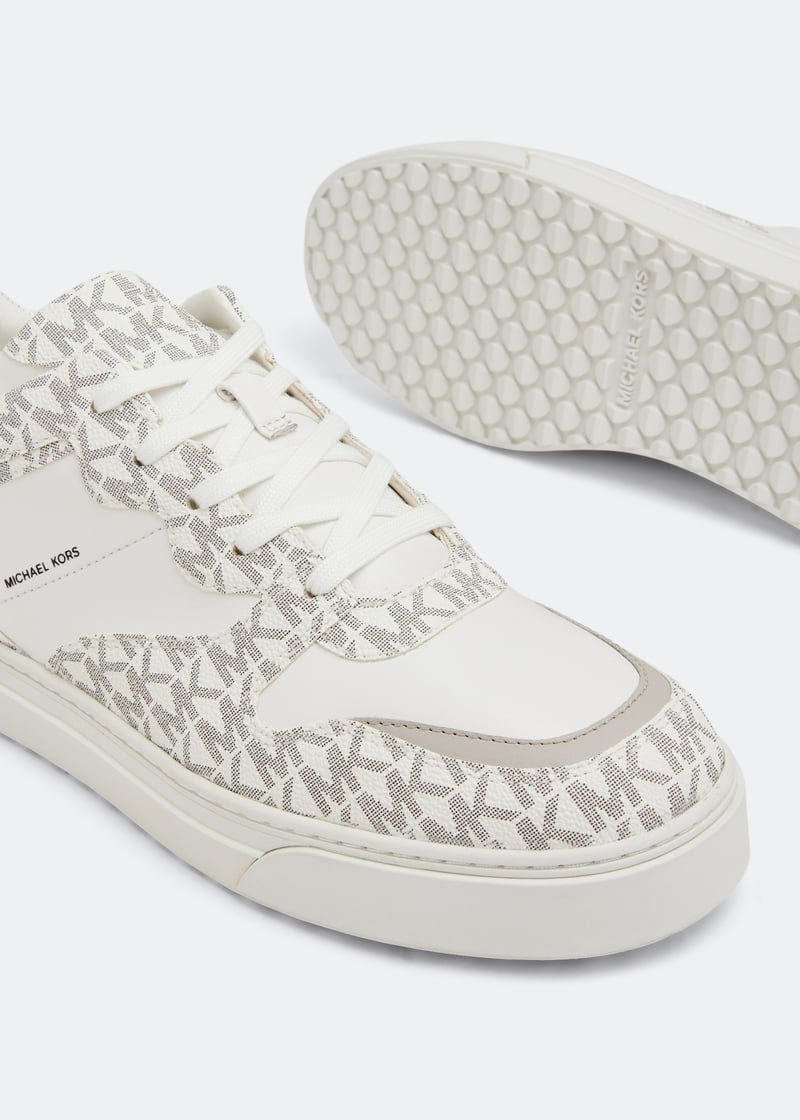Crafted from logo-print twill and Nappa leather in a ’90s-inspired silhouette, the Baxter sneakers from Michael Kors are set on a smooth rubber sole with a streamlined profile. Perfect for pairing with everything from suits to weekend denim.