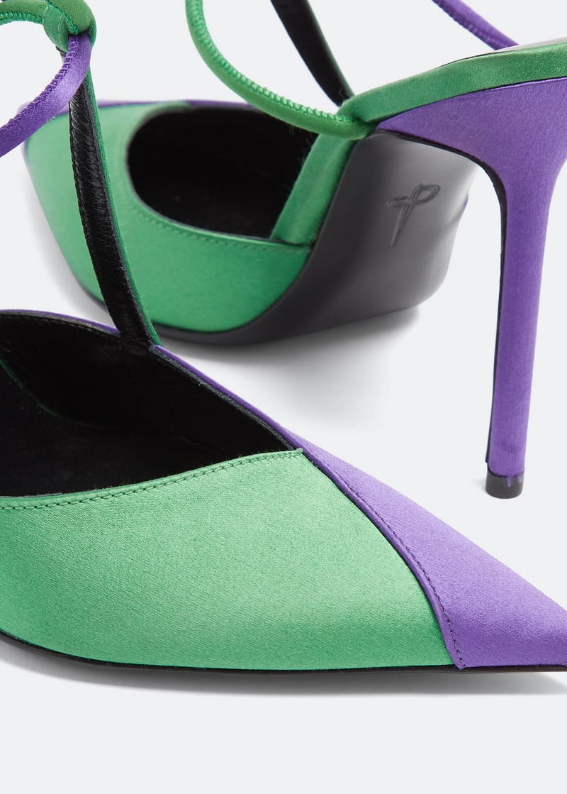 The Paciotti evening pointed pumps are sure to add an electric pop to any outfit. Made from satin, they're designed in a dual colourway, stiletto heel, and slim straps that wrap around the ankle.
