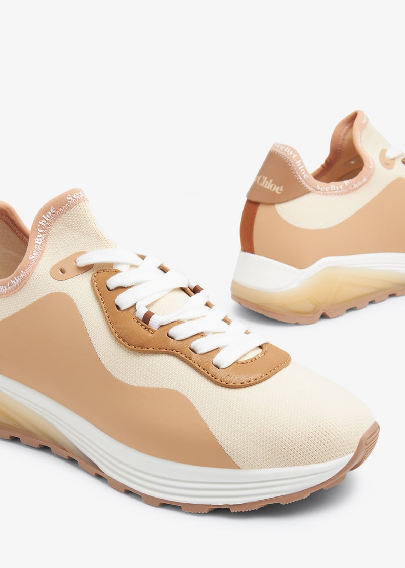 See by Chloé's Brett sneakers are a casual, sporty style perfect for the girl about town. The knitted fabric upper is paired with a contrasting rubber sole and detailed with wavy panels and the classic branding on the binding and heel tab.