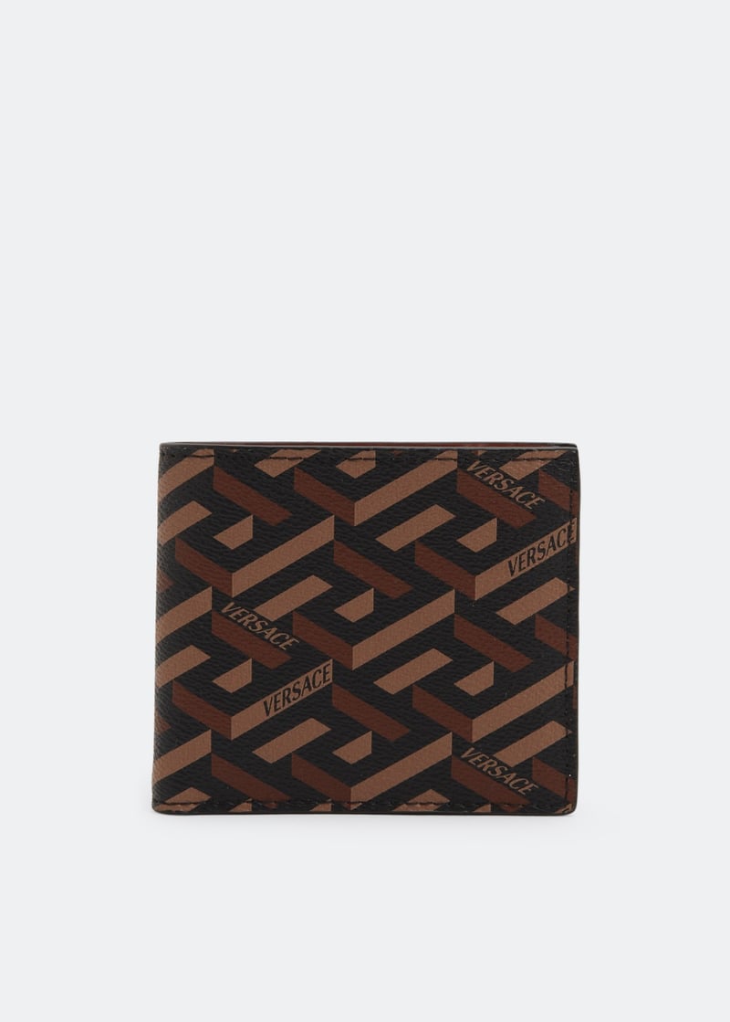 Keep your cards and cash stored safe and sound - courtesy of the La Greca signature bi-fold wallet by Versace. It's designed with coated La Greca canvas, note compartments, two pockets, and six card slots. Wallet measures approximately 11cm x 1cm x 9cm.