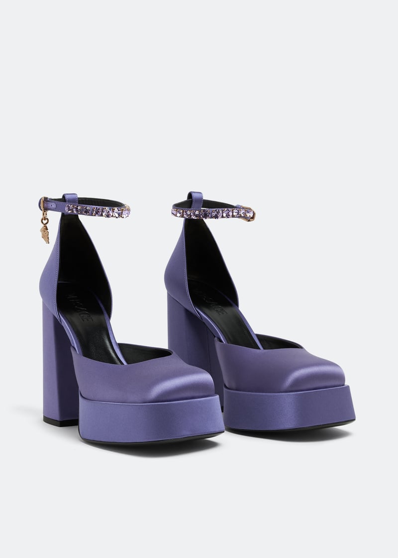 Daring and chic, these Medusa Aevitas single-platform pumps from Versace are sure to be at the top of your wishlist. Made from satin, this updated pair comes with a single platform sole, chunky 120mm heel, and an ankle strap adorned with rhinestones and a gold Medusa charm.